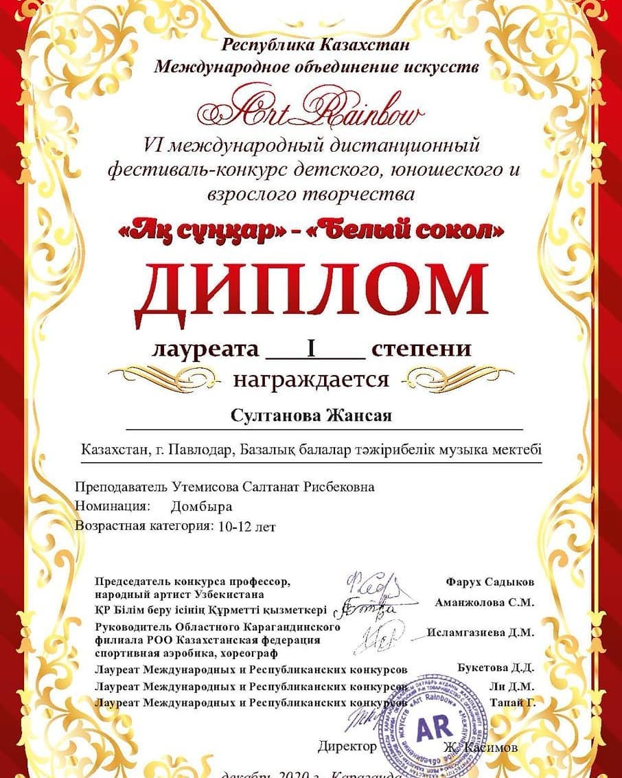 Абай Құнанбаевтың 175 жылдығы мен Тәуелсіздік күніне арнап Абайдың "Май түні" күйімен Павлодар музыкалық колледж "Базалық балалар тәжірибелік музыка мектебі"-нің 3 сынып оқушысы Жансая Султанова Халықаралық байқауға қатысып 1 орынды иеленді. Айта кетсек, бұл Жансаяның алғашқы байқауы. Ұстазы: Құрманғазы атындағы Қазақ Ұлттық Консерваториясының түлегі, Музыкалық білім педагогика ғылымдарының магистрі @utemissova_saltanat Салтанат Рысбекқызы Утемисова . Осындай талантты ұрпақтар ұлтымыздың болашағы, мәдениетіміздің мұрасын жалғастырушы. Талабына нұр жаусын, шын жүректен Жансаяны құттықтаймыз!