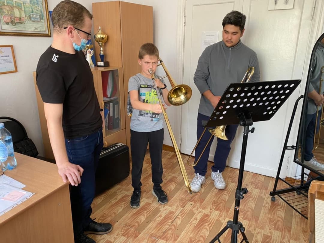 Oқытушы Дмитрия Александровича Пичугиннің оқушылары Лейднер Александр мен Иван, тәжірибеден өтушілер Сариев Мадияр 3 курс әне Майоров Дмитрий 4 курс