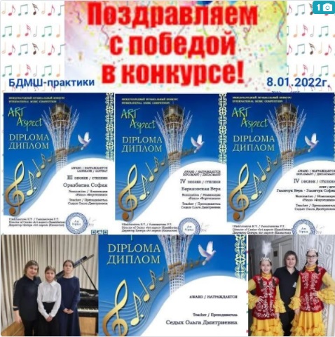 Базалық тәжірибе мектебінің оқушылары - Оразбаева София 7 сынып - 3 орын, Барановская Вера 7 сынып - 4 орын, Головчук Вера және София (дуэт) - 4 орын, оқытушы Седых Ольга Дмитриевна @olga_sedikh .